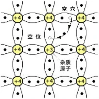 一般的解释是,由于在四价的硅或锗晶体中掺进了三价的铟或镓原子,这些原子和硅或锗的原子的化合键中就缺少了一个电子.这个缺位叫空穴.这样的材料叫P型半导体.在外电场中,P型半导体中的电子会逆电场方向依次填补空穴,同时空穴也就沿电场方向移动.空穴就可以被认为是带正电的粒子,以它的运动取代电子的运行来解释P型半导体中电流的形成.用空穴概念甚至可以解释P型半导体的霍尔效应.一块通有电流的P型半导体置于磁场中.其中的空穴沿电流方向运动受磁场力方向向上,因而会在上缘集聚,使上缘带正电,同时下缘就带了负电.上缘电势就高于下缘电势.这一解释完全符合实验结果,说明概念是正确的。