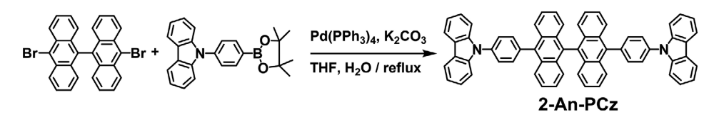 通过将一对咔唑基团与 9,9′-联蒽核相结合,实现了 2An-PCz 的对称分子结构,这赋予了其独特的电子结构和光学特性。